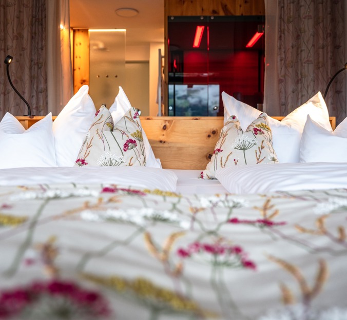 Our hotel is located in Fügen, in the front part of the Zillertal, above the village centre and surrounded by idyllic meadows. The Spieljochbahn valley station is in the immediate vicinity, providing quick access to the skiing and hiking area. The shops and cafés in the village centre are just a few minutes' walk away.