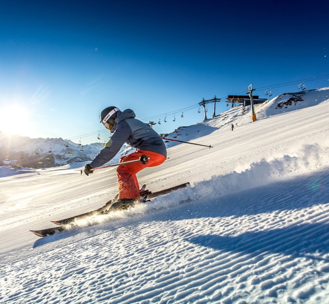 Das richtige Material: Carving-Ski sind tailliert und unterstützen den Schnitt in die Kurve – sie erleichtern sauberes Fahren deutlich.